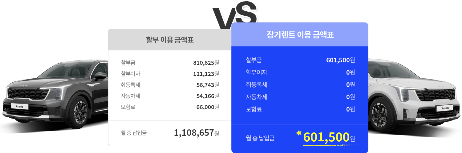 장기렌트는 차량을 소유하지 않고 장기적으로 빌려 사용하는 서비스로, 각종 세금 및 보험료가 포함되어 있는 임대서비스 입니다.